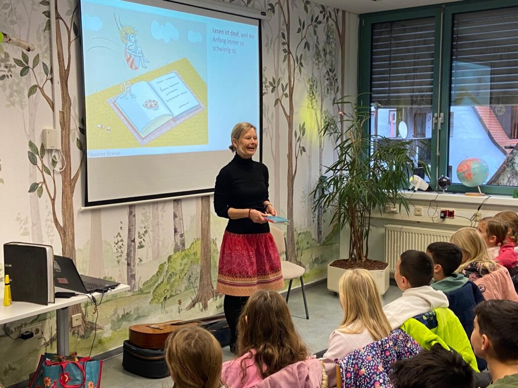 Am Donnerstag, den 19.11., fand für alle Zweitklässler eine Autorenlesung in der Stadtbücherei statt. Die Autorin Silke Schlichtmann las aus ihrem Buch „Mattis und das klebende Klassenzimmer“ vor, während ihr alle Kinder gespannt zuhörten. Abwechslungsreich und interaktiv gestaltet wurde die Lesung mit Erzählungen sowie musikalischen Elementen zwischendurch. Es war ein tolles Erlebnis für alle!