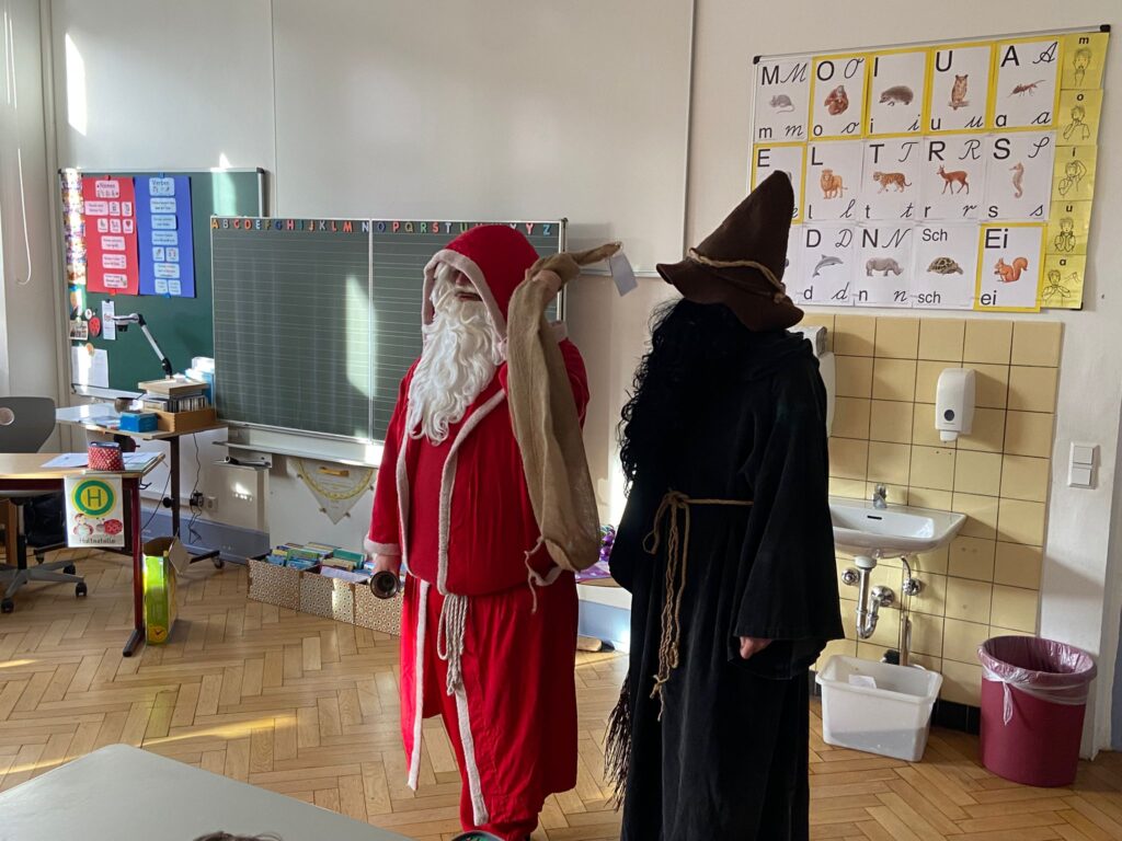 Am Montag 8.12. war bei uns der Nikolaus zu Besuch. In seinem großen Sack hatte er ein wunderschönes Halstuch und Schokolade für alle Schüler dabei.